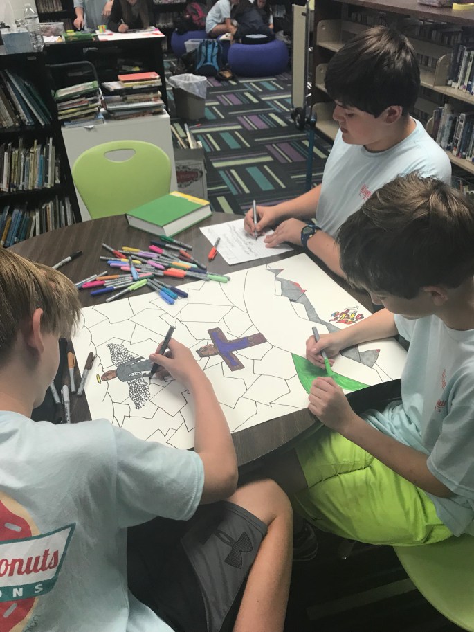 Last day of Bible class for the year! This week we looked at examples of how Christ has been portrayed in art through history, and then created our own pieces. Each piece emphasizes a different aspect of Christ’s character and tells a story through symbols. @ St. George’s Episcopal School