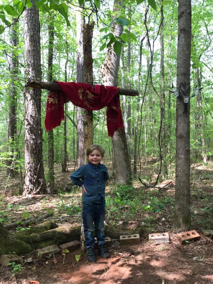 This week my son, Barret, and I went on a sort of pilgrimage. We were at his grandparents house in Georgia and went looking in the back woods for the remains of an outdoor chapel we had created when we lived there during the pandemic. Six years ago when the world shut down and we could not go to church, we created this little space amidst the trees complete with a cross and a fire pit and candle holders and a bell, all marked out on the ground by stones and bricks. And each week we processed down the hill and into the woods by the tiny creek to sing songs and say prayers and read Scripture.