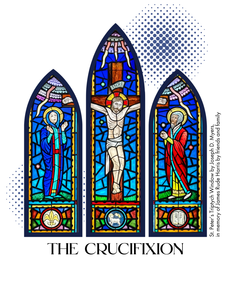 Have you ever noticed this beautiful triptych window in the front of the church? It’s been there for over 50 years. The colors are gorgeous. And when you look at it from certain angles, standing in front of it, the images themselves, pop out at you and have this incredible 3-D effect. It’s really a treasure of this congregation. After the mass I invite you to come up and take a look. You can also find it on the prayer card in your service program.