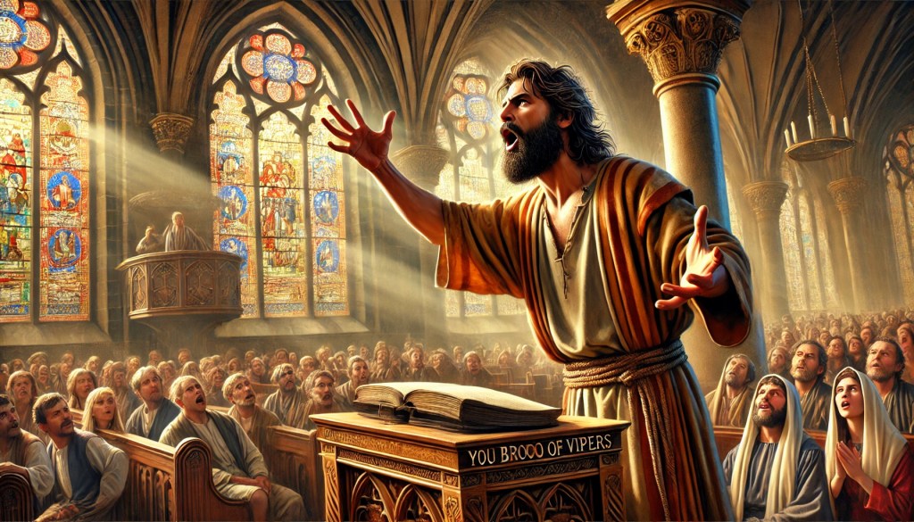 It’s a hard one isn’t it? And this is the way he speaks not to the passers-by but to his congregation. To the ones that have already come out to see him and are convinced by his message! Can you imagine if I spoke to you that way? I suspect I wouldn’t be here very long.