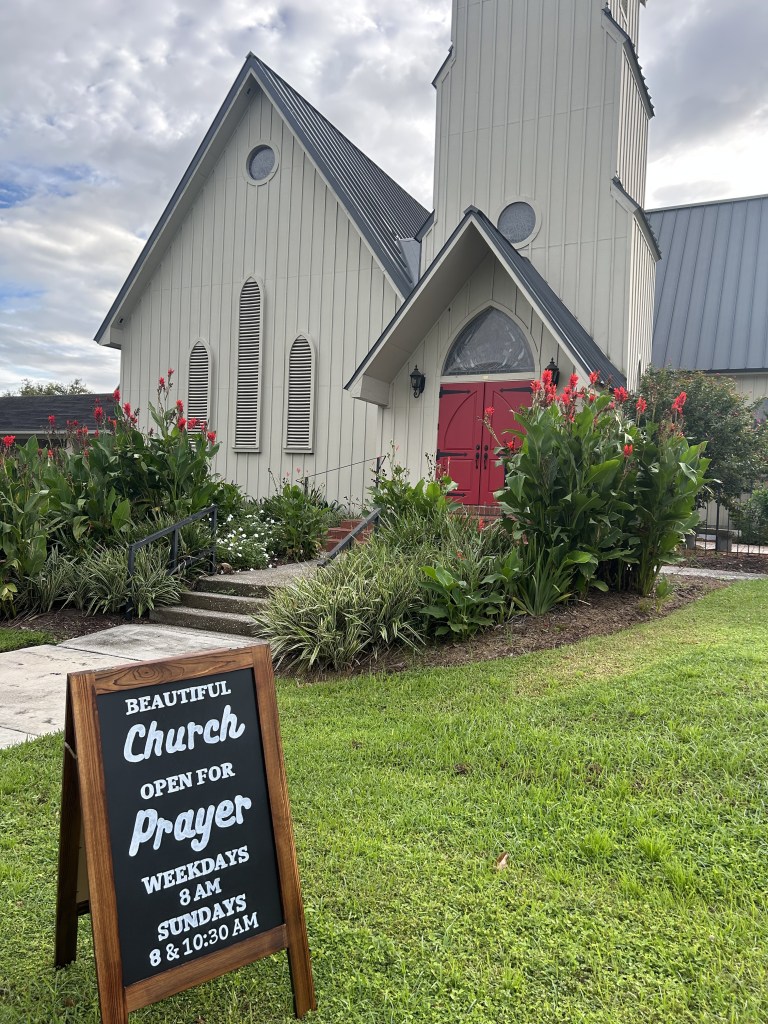 Every morning is the same beautiful routine. I walk out the rectory front doors, take a deep breath, cross the street, and open the doors to the church. I start with the south door, the door closest to the rectory. The church is dark when I enter and the alarm is saying its morning prayers, asking me to turn it off, and I do. I then open the door to the sacristy where I put my things down and put on my cassock. I turn on the lights and then unlock the north door, checking outside to see if anyone is waiting or if a neighbor has taken shelter in our cloister. Finally, I unlock the door to the narthex, the entrance of the church, and place the welcome sign out by the road, and ring the bell. It has been surprising just how spiritually moving this simple routine has been over the last few months. Unlocking the doors is a prayer itself.